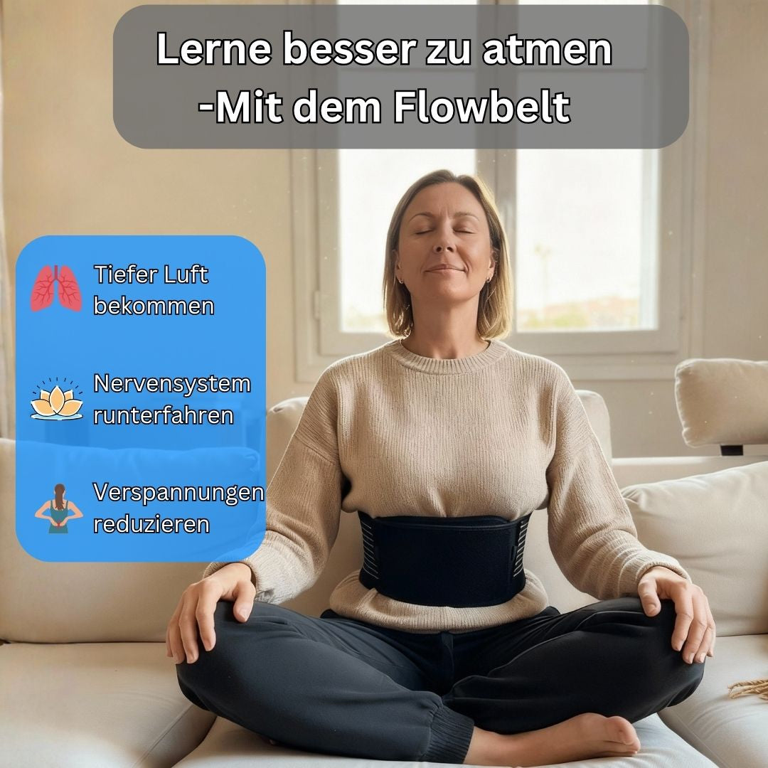Flowbelt: Dein Atem-Trainingsgurt, der dir sofort zeigt, wie du richtig und tief atmest. Du spürst direkt den Unterschied und kommst leichter in den Entspannungsmodus.